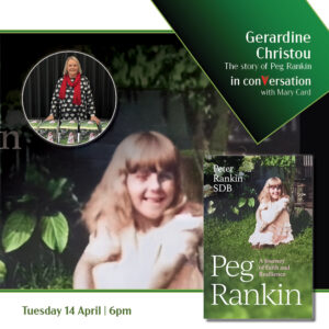 April 14 @ 6:00 pm – 7:30 pm $11.78 Humffray Room Get Tickets Peg Rankin: A Journey of Faith and Resilience Peter Rankin SDB As told by Gerardine Christou This...